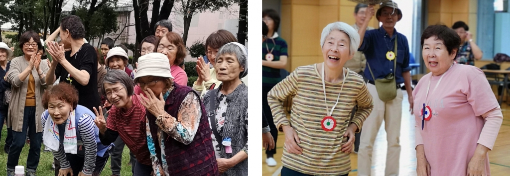 西都保健生協のすべての支部からウォーキングで集まって、歌って、踊って、ゲームをして大いに盛り上がります。